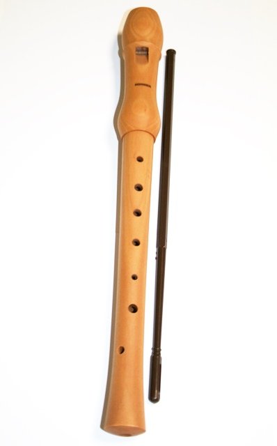 Flauta soprano fabricada en madera de peral en dos piezas con escobilla.